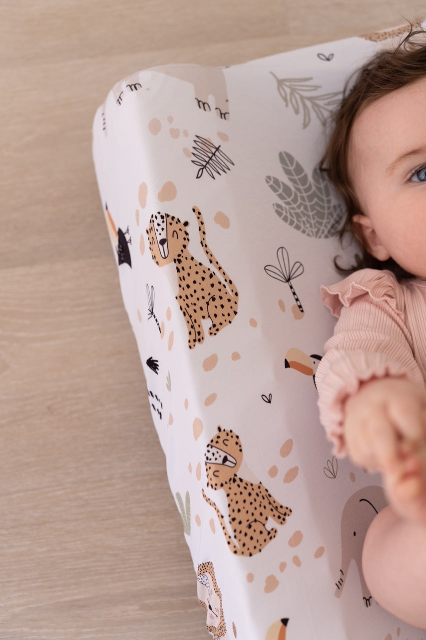 Wrap your little one in pure comfort with our Organic Cotton Jersey Stretch Bassinet Sheets, they fit snug and add a touch of wild to your nursery.